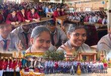 पथ संचलन का पुष्प वर्षा एवम् ढोल नगाड़ों से किया स्वागत