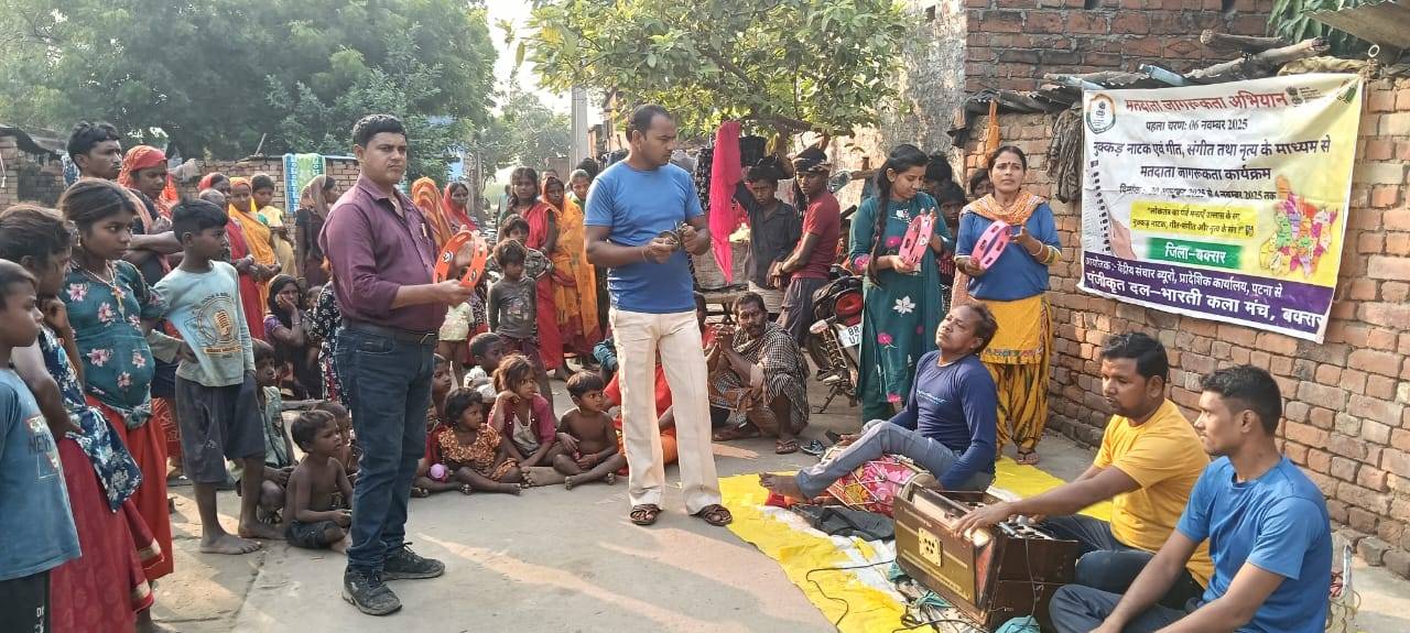 इस कार्यक्रम में भारती कला मंच, बक्सर की टीम द्वारा प्रस्तुत नुक्कड़ नाटक एवं विभिन्न सांस्कृतिक गीतों के माध्यम से मतदाताओं को मतदान के महत्व से अवगत कराया गया। कलाकारों ने सरल संवाद, नाटकीय प्रस्तुति एवं लोक धुनों के माध्यम से यह संदेश दिया कि लोकतंत्र की पहचान – आपका मतदान है।