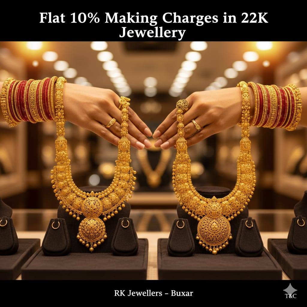 बक्सर में ज्वेलरी धमाका : RK Jewellers ने लॉन्च किया ‘फ्लैट 10% मेकिंग चार्ज’ ऑफ़र — शादी सीजन में मचा हंगामा!