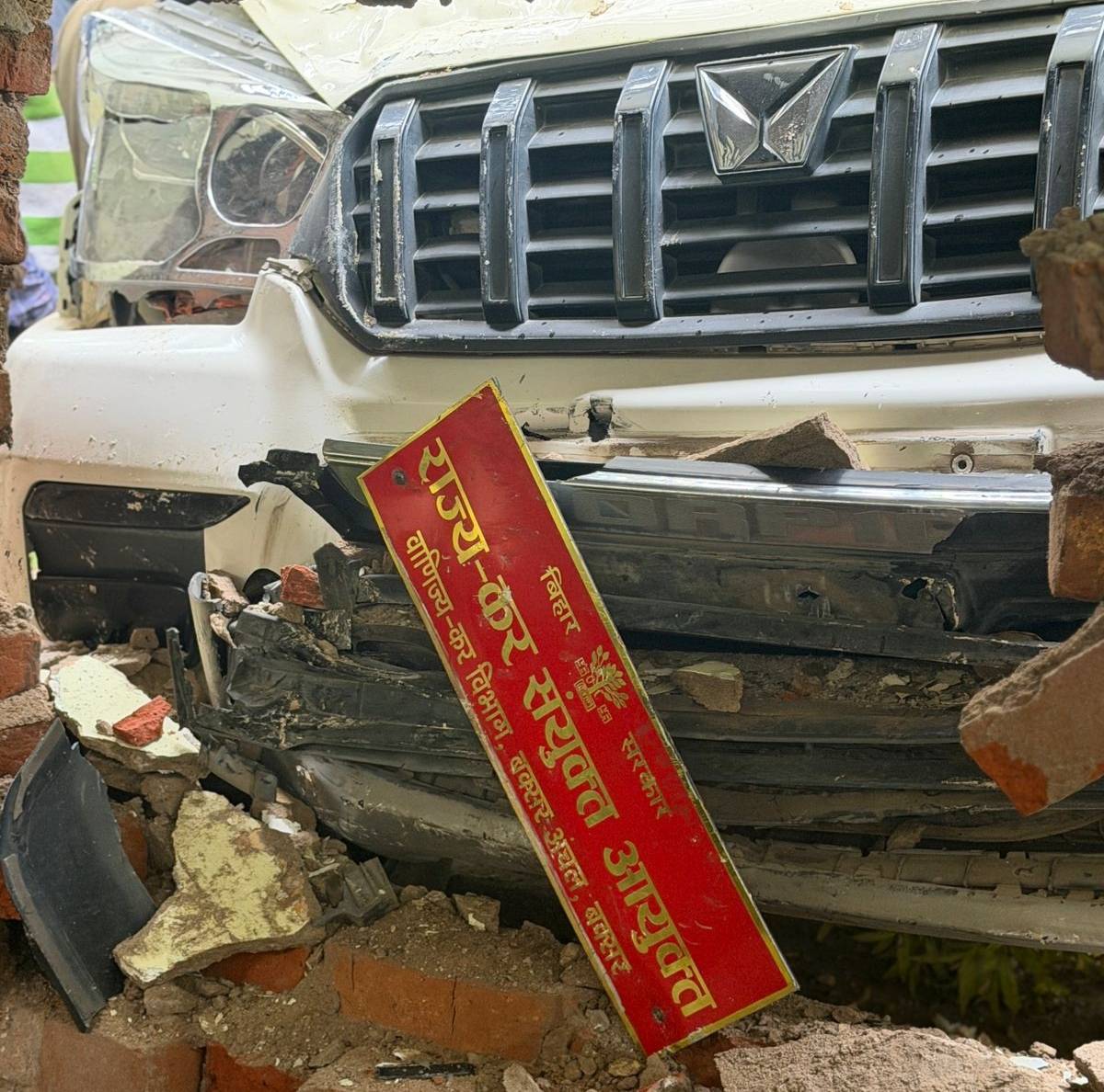 प्रत्यक्षदर्शियों के अनुसार दुर्घटनाग्रस्त स्कॉर्पियो जिला प्रशासन की प्रतीत हो रही है। वाहन के आगे स्पष्ट रूप से “राज्य कर संयुक्त आयुक्त, वाणिज्य कर विभाग, बक्सर अंचल, बिहार सरकार” लिखा बोर्ड लगा हुआ था। स्कॉर्पियो का रजिस्ट्रेशन नंबर BR44P8196 बताया गया है। वहीं वाहन के अंदर से एक पहचान पत्र भी बरामद हुआ है, जिस पर चालक का नाम अभिषेक कुमार अंकित है।