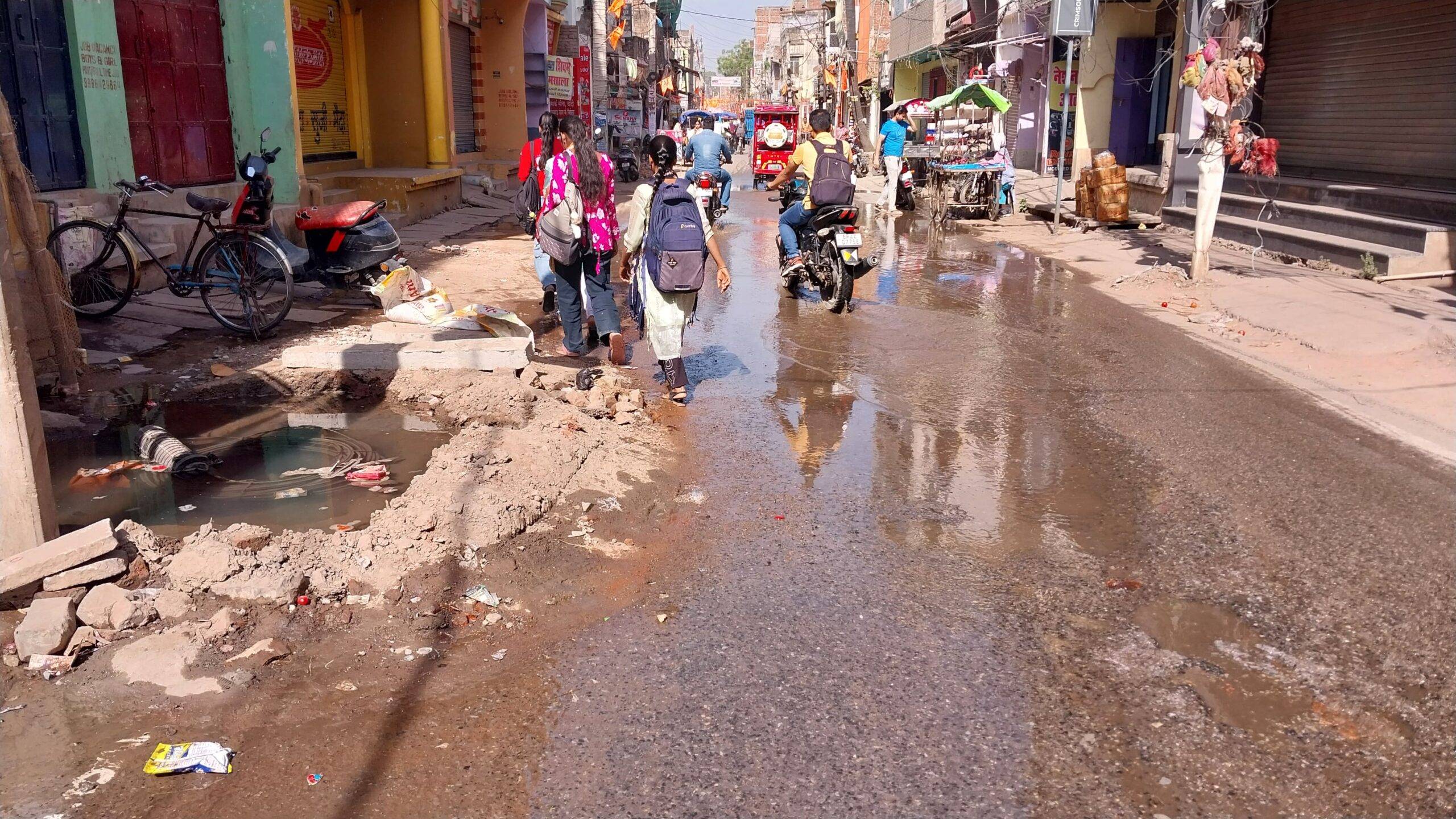 सड़क पर बह रहा नाला और सप्लाई का पानी, फजीहत झेल रहे लोग