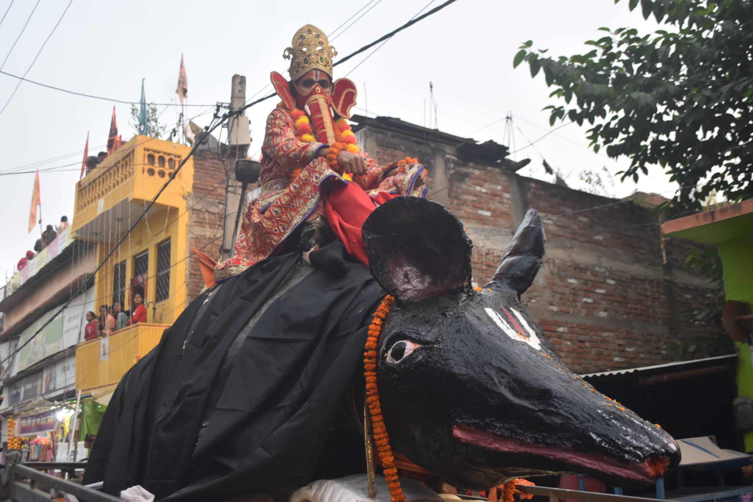 श्री सीताराम विवाह महोत्सव आश्रम से निकाली गई श्रीराम बारात शोभा यात्रा में अलौकिक नजारा दिखा। आज मिथिला नगरिया निहाल सखियां, चारों दूल्हा में बड़का कमाल सखियां गीत के धुन पर बरातियों ने जमकर ठुमका लगाए। प्रभु के बारात में देवो के देव महादेव और माता पार्वती बसहा बैल पर सवार होकर बराती बने हुए थे। वहीं गणेश भगवान मूसक पर सवार थे।