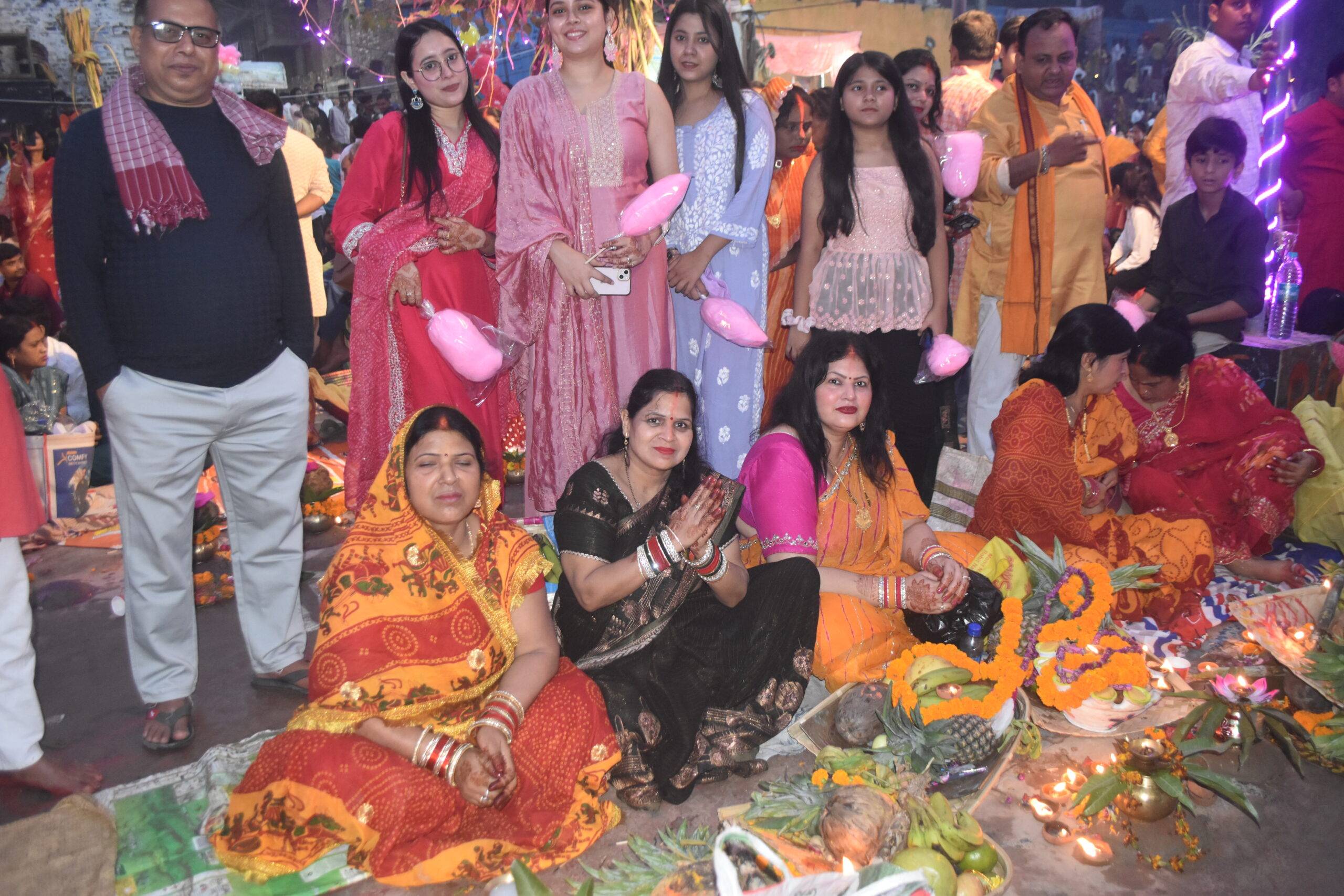 लोक आस्था के महापर्व पर शहर के गंगा घाटों पर उमड़ा आस्था का जनसैलाब