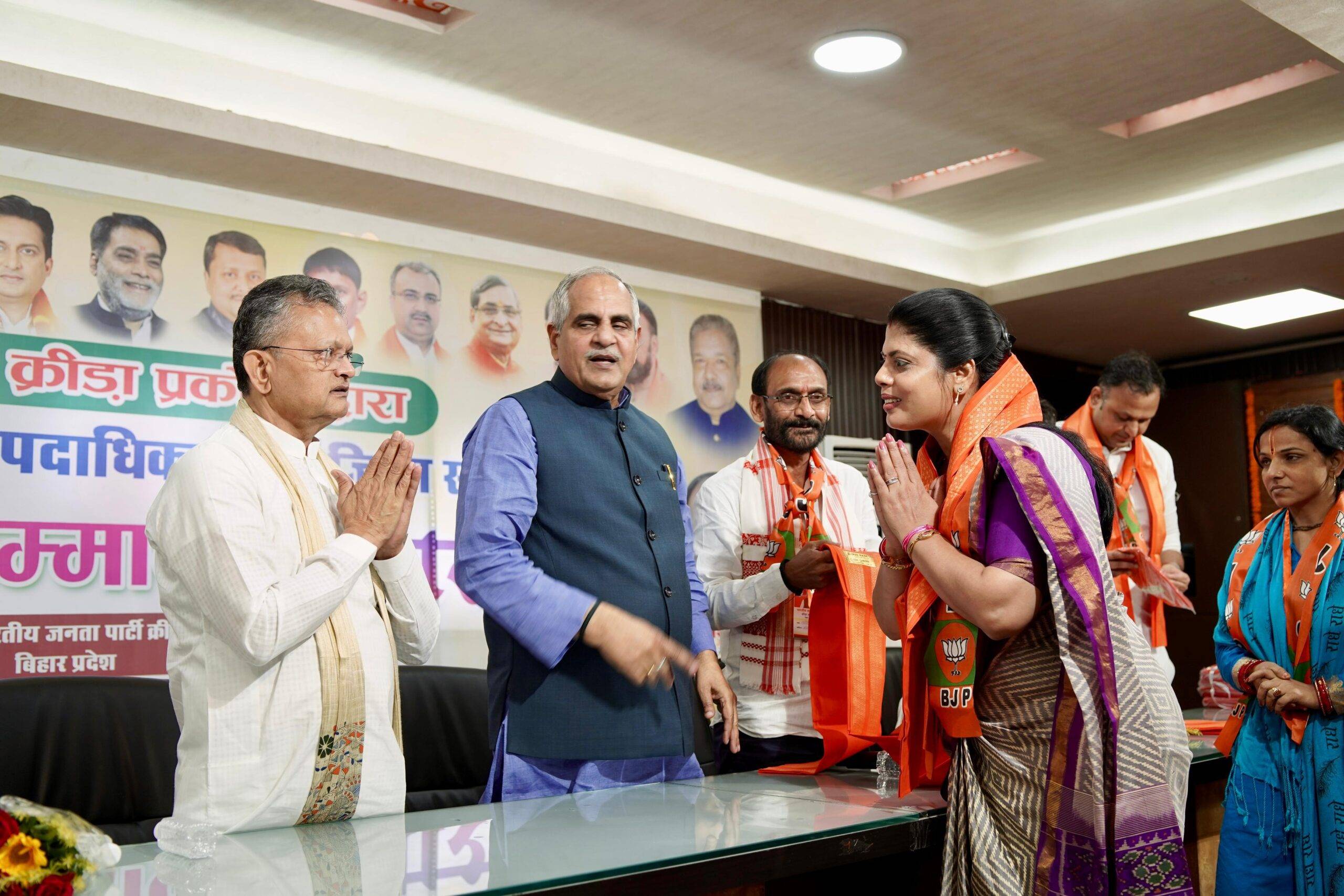 बैठक में संगठन महामंत्री नागेंद्र नाथ त्रिपाठी, संगठन महासचिव भीखूभाई दलसानिया तथा प्रदेश महामंत्री राजेश वर्मा मुख्य रूप से उपस्थित रहे। मंच से सभी वरिष्ठ नेताओं ने प्रदेशभर से आए क्रीड़ा प्रकोष्ठ के पदाधिकारियों को संगठन के कार्यों की दिशा में मार्गदर्शन प्रदान किया और खिलाड़ियों एवं खेल से जुड़े कार्यकर्ताओं के मनोबल को ऊँचा उठाया। कार्यक्रम के दौरान क्रीड़ा प्रकोष्ठ की नवनियुक्त प्रदेश महिला संयोजिका वर्षा पांडेय को संगठन महामंत्री नागेंद्र नाथ त्रिपाठी ने अंगवस्त्र ओढ़ाकर सम्मानित किया। सम्मानित होने के उपरांत अपने उद्बोधन में वर्षा पांडेय ने कहा कि खेल केवल प्रतियोगिता का माध्यम नहीं है, बल्कि यह अनुशासन, परिश्रम और राष्ट्र भावना का प्रतीक है। भाजपा क्रीड़ा प्रकोष्ठ का लक्ष्य है कि बिहार की प्रतिभाओं को उचित मंच मिले ताकि हर खिलाड़ी राष्ट्र निर्माण में अपनी सक्रिय भूमिका निभा सके।
