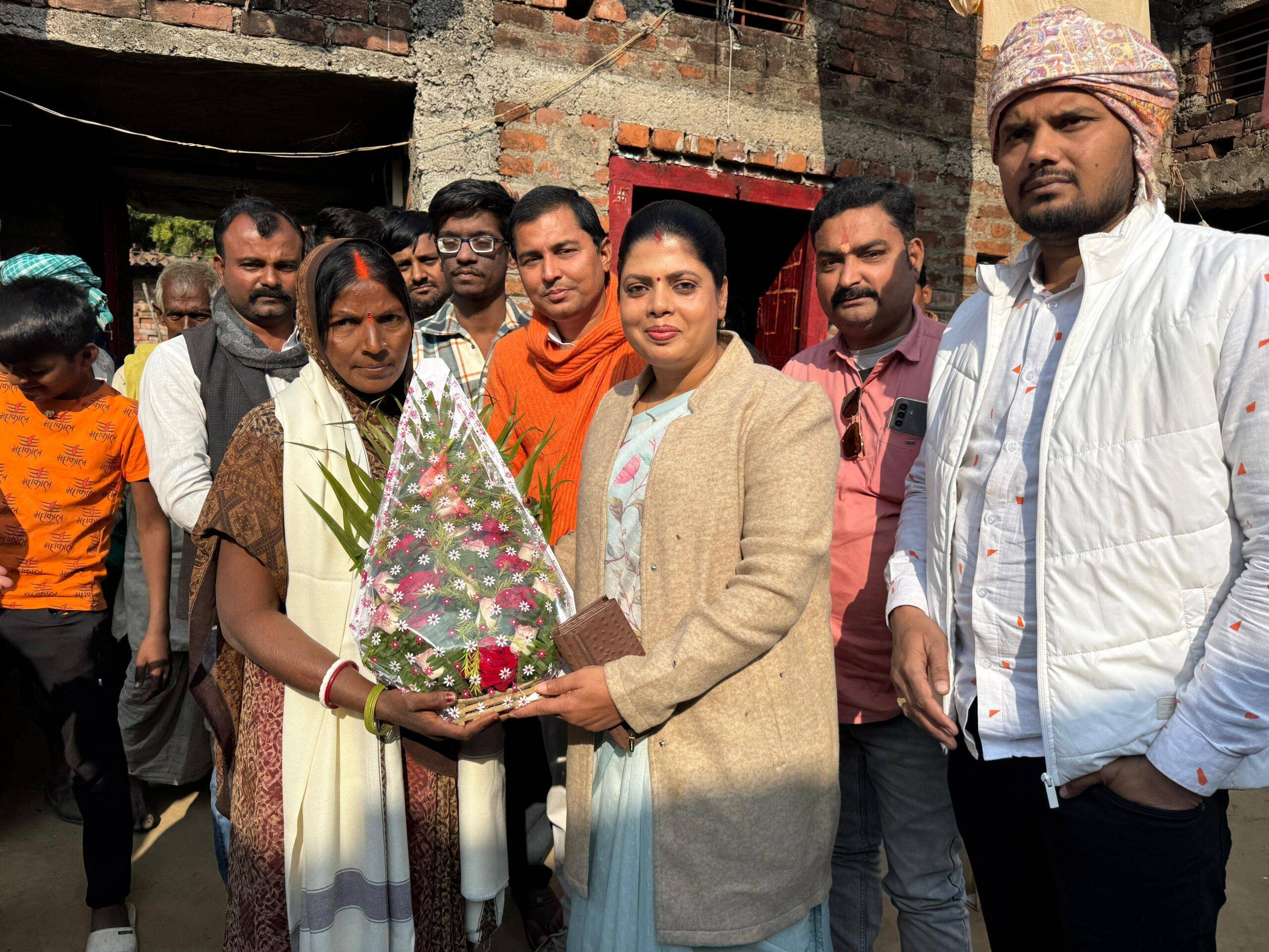 नेत्रहीन महिला क्रिकेट में विश्व चैंपियन बनी अनु चौधरी के घर पहुंची भाजपा क्रीड़ा मंच की टीम