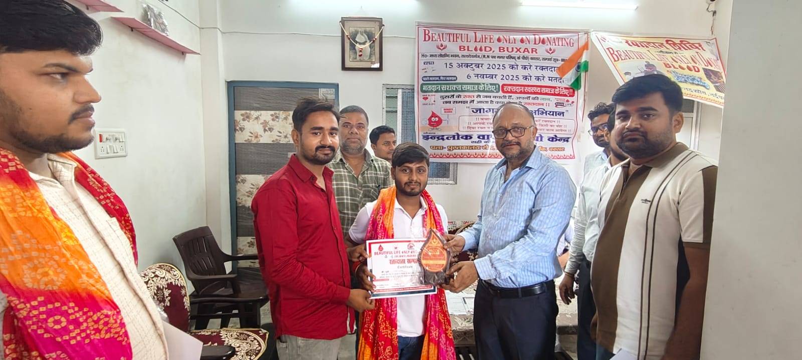 ब्यूटीफुल लाइफ ओनली ऑन डोनेटिंग ब्लड बक्सर द्वारा बुधवार को कुमार गौरव के जन्मदिन पर महादान शिविर और रक्तदान जागरूकता अभियान के अंतर्गत सुबह 10 बजे से रक्तदान शिविर का आयोजन ब्यूटीफुल लाइफ ओनली ऑन डोनेटिंग ब्लड बक्सर द्वारा मध्य लोहंदी भवन, आर ऍन पथ, नगर परिषद के पीछे बक्सर मे किया गया। जिसका उद्घाटन रेड क्रॉस के चेयरमैन सुरेश अग्रवाल ने किया l जिसमे रेड क्रॉस के उपाध्यक्ष सौरभ तिवारी, कोषाध्यक्ष दीपक अग्रवाल, ब्लड बक्सर के सुमित मानसिंहका, प्रियेश प्रभा रंजन, नसीम नायक उपस्थित रहे l बिहार विधान सभा चुनाव के मद्देनजर मतदान महापर्व में मतदान हेतु मतदाताओं को जागरूक भी किया गया l