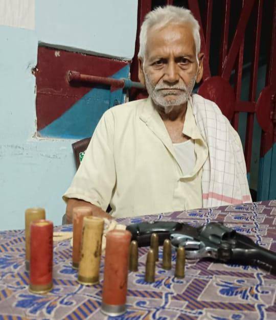 83 वर्षीय बुजुर्ग के घर से रिवॉल्वर और 11 गोली बरामद