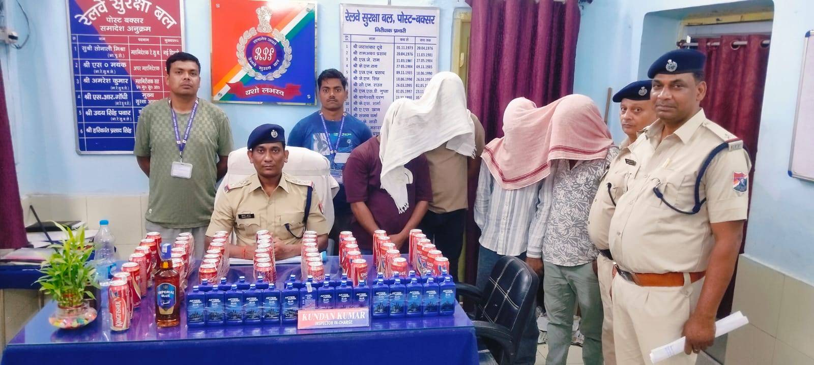 बक्सर आरपीएफ ने कुंभ एक्सप्रेस से 32 लीटर अंग्रेजी शराब बरामद, 4 तस्कर गिरफ्तार