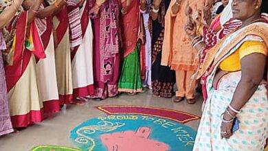 आंगनबाड़ी सेविकाओं ने रंगोली बना मतदान के प्रति किया जागरूक