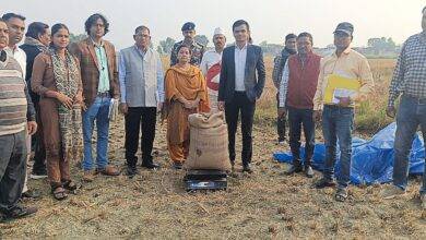 उपज का सर्वे कराने के लिए धान फसल की कराई गई क्राॅप कटिंग