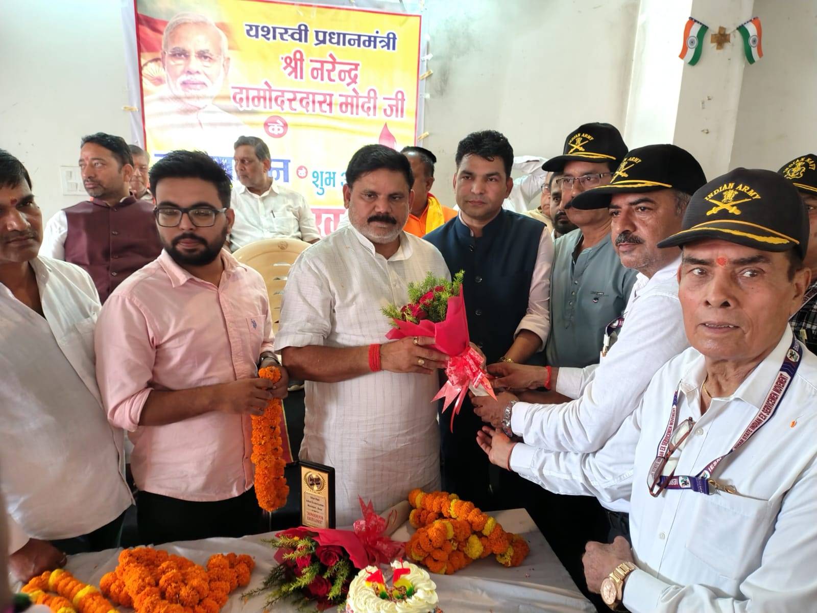 सम्मान समारोह के पश्चात मंत्री जी और डॉक्टर मेजर पी के पाण्डेय तथा आई ई एस एम के वरिष्ठ पदाधिकारी और समाजसेवियों द्वारा केक काटकर भारत के यशस्वी प्रधानमंत्री माननीय नरेंद्र दामोदर दास मोदी जी के जन्मदिन बड़े धूमधाम से मनाया गया। भारत माता की जय और प्रधानमंत्री नरेंद्र मोदी जिंदाबाद के गगनभेदी नारों से सारा वातावरण गुंजायमान हो गया। आई ई एस एम बक्सर के जिला उपाध्यक्ष सूबेदार विद्या सागर चौबे ने सैनिकों को 50 डिसमिल जमीन की मांग जो 20 वर्षों से चली आ रही है जिसमे कैंटीन, सोल्जर बोर्ड, ई सी एच एस और सैनिक आराम गृह बनाना है उसे मंत्री जी के समक्ष रखा जिसे सैकड़ों सैनिकों ने अपने तालियों की गड़गड़ाहट से समर्थन किया। उपाध्यक्ष महोदय ने बताया कि भारत में भी भाजपा की सरकार है और बिहार में भी परंतु जो भी मंत्री हमारे मंच पर आते हैं वे मात्र आश्वासन देकर चले जाते हैं। मंत्री जी ने सैनिकों की मांगों को शीघ्र कराने का आश्वासन दिए जिसे सभी सैनिकों ने उन्हें धन्यवाद दिया। सैनिकों ने अपनी मांगों को लिखित रूप में में भी एक मेमोरेंडम मंत्री जी को दिया।