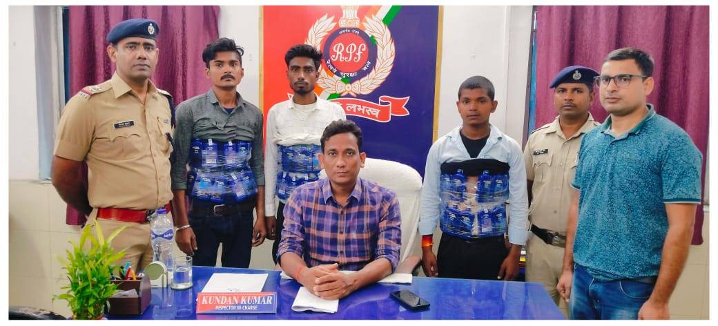 रेलवे सुरक्षा बल ने तीन शराब तस्करों को पकड़ा, 72 बोतल विदेशी शराब बरामद