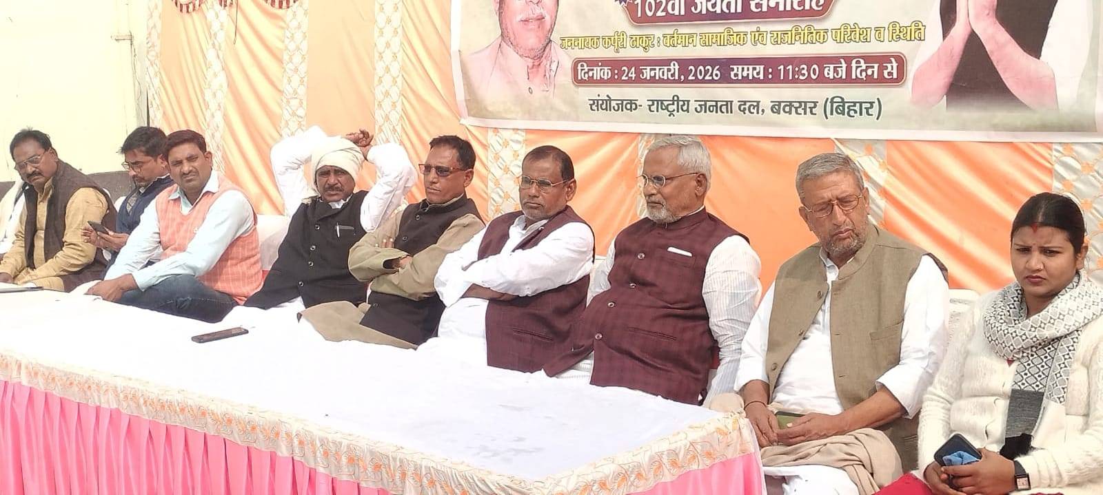 राष्ट्रीय जनता दल की ओर से शनिवार को बक्सर जिला कार्यालय के पास जननायक कर्पूरी ठाकुर का 102वां जन्मदिन समारोह पूर्वक मनाया गया। कार्यक्रम की अध्यक्षता जिलाध्यक्ष शेषनाथ सिंह व संचालन जिला प्रधानमहासचिव धनपति चौधरी ने किया। मौके पर सभी प्रकोष्ठ के जिला अध्यक्ष, पंचायत अध्यक्ष, प्रखंड अध्यक्ष और कार्यकर्ता मौजूद थे। वक्ताओं ने कर्पूरी ठाकुर द्वारा शोषित, बंचितो, अकलियतों, पिछड़ों, दलितों के हित मे किए गए सभी कामों प्रकाश डाला। उन्होंने कहा कि पिछड़ों, दलितों और शोषितों की आवाज थे।