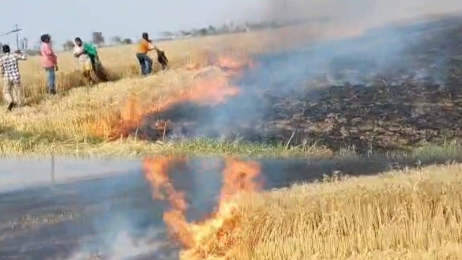 हार्वेस्टर की चिंगारी से राजपुर में ढाई एकड़ गेहूं की फसल जलकर राख