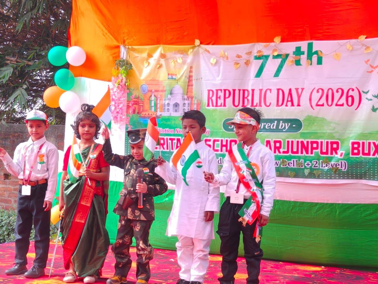 हेरिटेज स्कूल अर्जुनपुर, बक्सर (+2 स्तरीय) में 77वें गणतंत्र दिवस समारोह का आयोजन अत्यंत भव्य, गरिमामय एवं देशभक्ति के वातावरण में किया गया। कार्यक्रम की शुरुआत विद्यालय प्रबंधन द्वारा देश के अमर शहीदों के तैल चित्र पर पुष्पांजलि अर्पित कर की गई। इसके पश्चात विद्यालय के संस्थापक स्वर्गीय दिलीप कुमार पाठक की प्रतिमा पर पुष्पांजलि एवं माल्यार्पण कर उन्हें श्रद्धासुमन अर्पित किए गए।