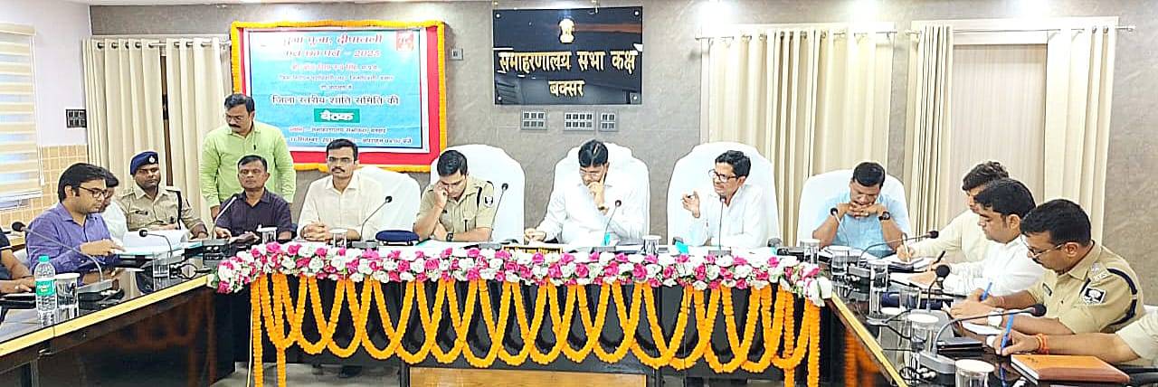 जिला पदाधिकारी द्वारा उपस्थित जिला शांति समिति के सभी सम्मानित सदस्यों, सभी जिला एवं प्रखंड स्तरीय पदाधिकारियों को विस्तृत रूप से अवगत कराते हुए दुर्गा पूजा पर्व को शांतिपूर्ण एवं सद्भावना पूर्वक मनाये जाने का अनुरोध किया गया।कार्यपालक पदाधिकारी नगर परिषद बक्सर एवं डुमराँव को निर्देश दिया गया कि आगामी पर्व को देखते हुए पर्व से पहले सभी मार्गों की साफ-सफाई कराना सुनिश्चित करेंगे। कार्यपालक अभियंता, विद्युत प्रमंडल बक्सर को निर्देश दिया गया कि आगामी पर्व के पूर्व अनुमंडल पदाधिकारी बक्सर एवं डुमराँव से समन्वय स्थापित कर सभी रूट की सूची प्राप्त कर लेंगे तथा निर्धारित रूट के मार्गों के लूज एवं लटके हुए तारों की मरम्मती कराने को निर्देश दिया गया। जिला पदाधिकारी द्वारा आगामी पर्व के दृष्टिगत अग्निशमन एवं चिकित्सा व्यवस्था को अलर्ट रहने का निर्देश दिया गया।