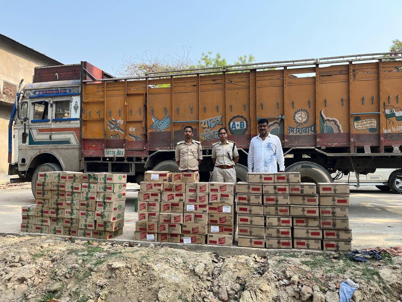 उत्पाद विभाग की बड़ी कार्रवाई: 12 चक्का ट्रक से भारी मात्रा में शराब बरामद, चालक फरार