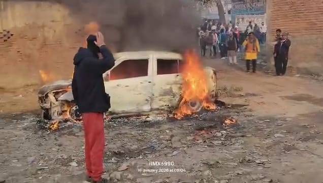 ब्रह्मपुर मंदिर के समीप खड़ी कार में रहस्य्मय तरीके से लगी आग