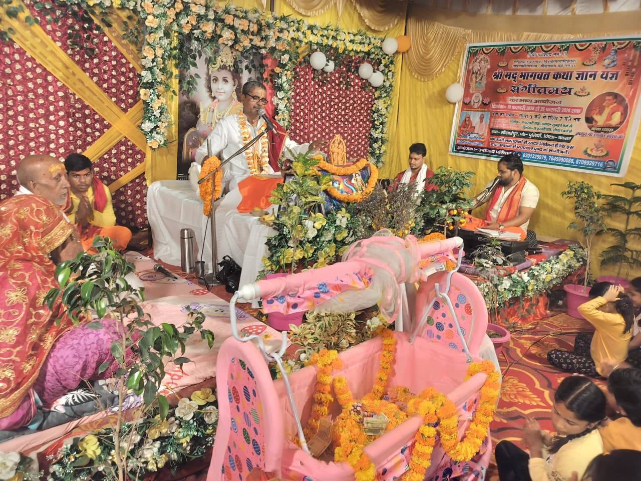 गोसाईंपुर में आयोजित श्रीमद्भागवत कथा में आचार्य श्री ने भगवान के रासलीला का किया वर्णन