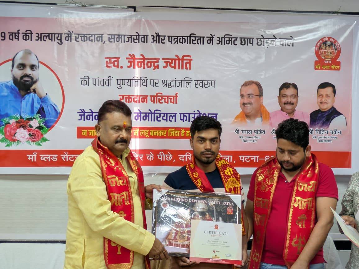 पटना में नवरात्रि के पावन अवसर पर मां ब्लड सेंटर, पटना में एक ऐतिहासिक पहल की गई। यहाँ बिहार का पहला सिंगल डोनर प्लेटलेट्स (SDP) डोनर सम्मान समारोह आयोजित किया गया। इस अवसर पर रक्तदान के क्षेत्र में निरंतर योगदान देने वाले दर्जनों रक्त वीरों को सम्मानित किया गया।