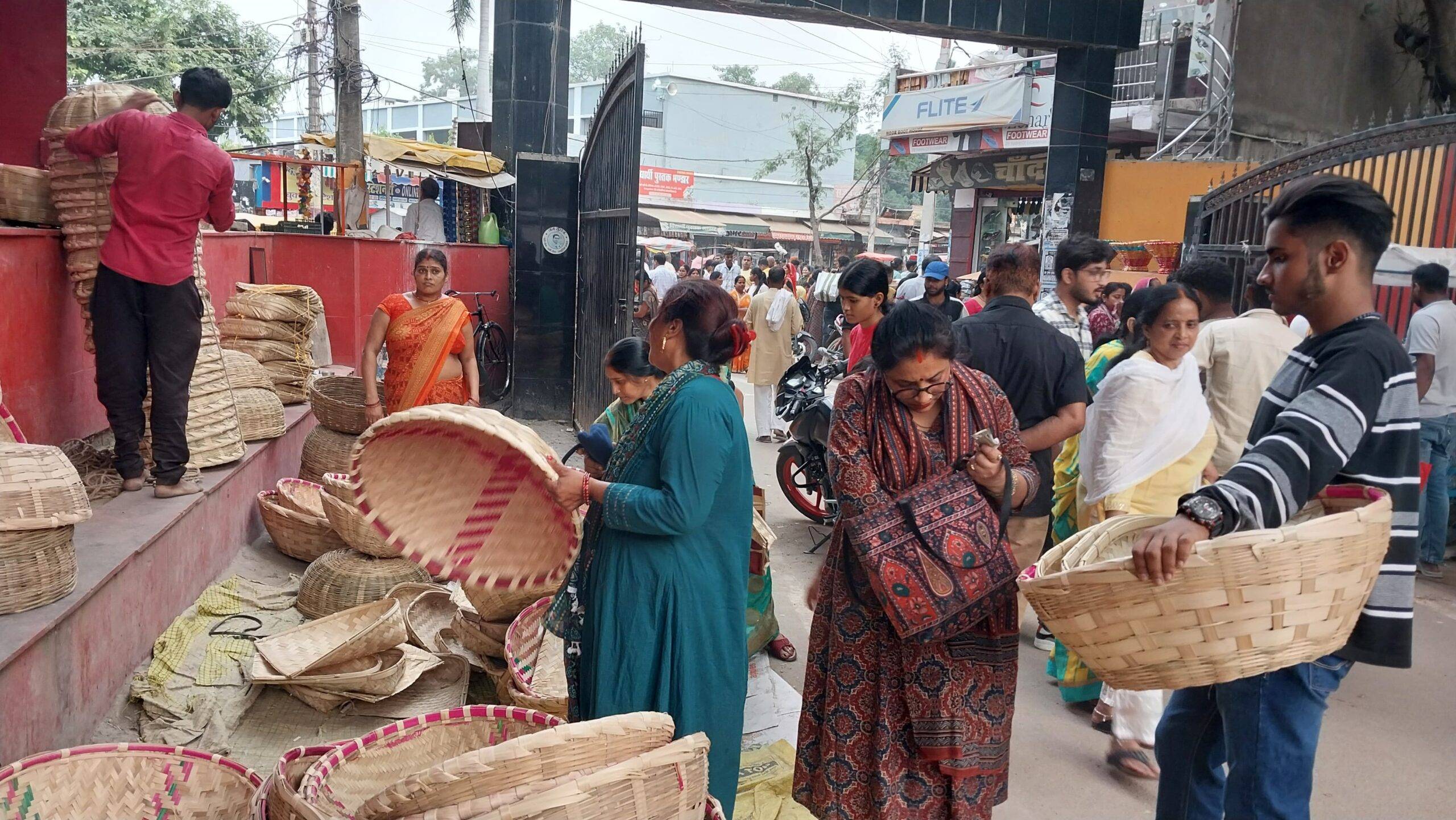 छठ व्रतियों व उनके परिजनों ने की सूप और दउरा की खरीदारी
