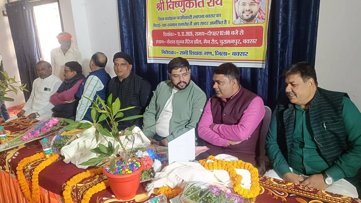 शुक्रवार को केशव कुंज मैरेज हाल चुरामनपुर, बक्सर के प्रांगण मे पूर्व जिला कार्यक्रम पदाधिकारी स्थापना शिक्षा विभाग बक्सर श्री विष्णु कांत राय का स्थानांतरण के पश्चात् जिले के शिक्षकों के द्वारा विदाई सह सम्मान समारोह का आयोजन किया गया। जिसमें अतिथि के तौर पर वर्तमान जिला कार्यक्रम पदाधिकारी स्थापना शिक्षा विभाग बक्सर उपस्थित हुए।