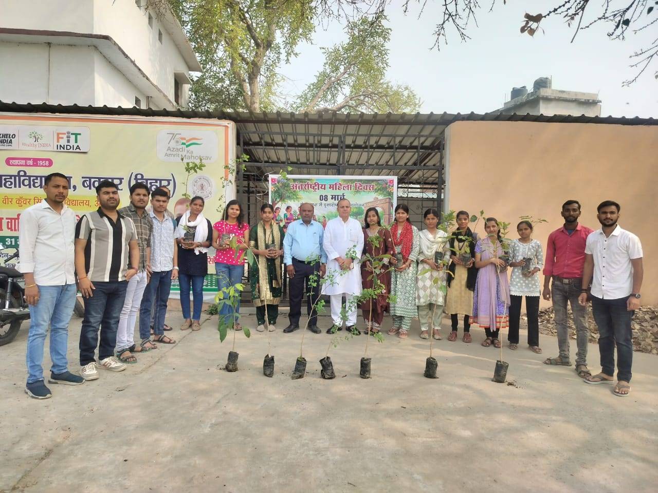 अंतराष्ट्रीय महिला दिवस के मौके पर छात्राओं ने महर्षि विश्वामित्र कालेज परिसर में किया पौधरोपण