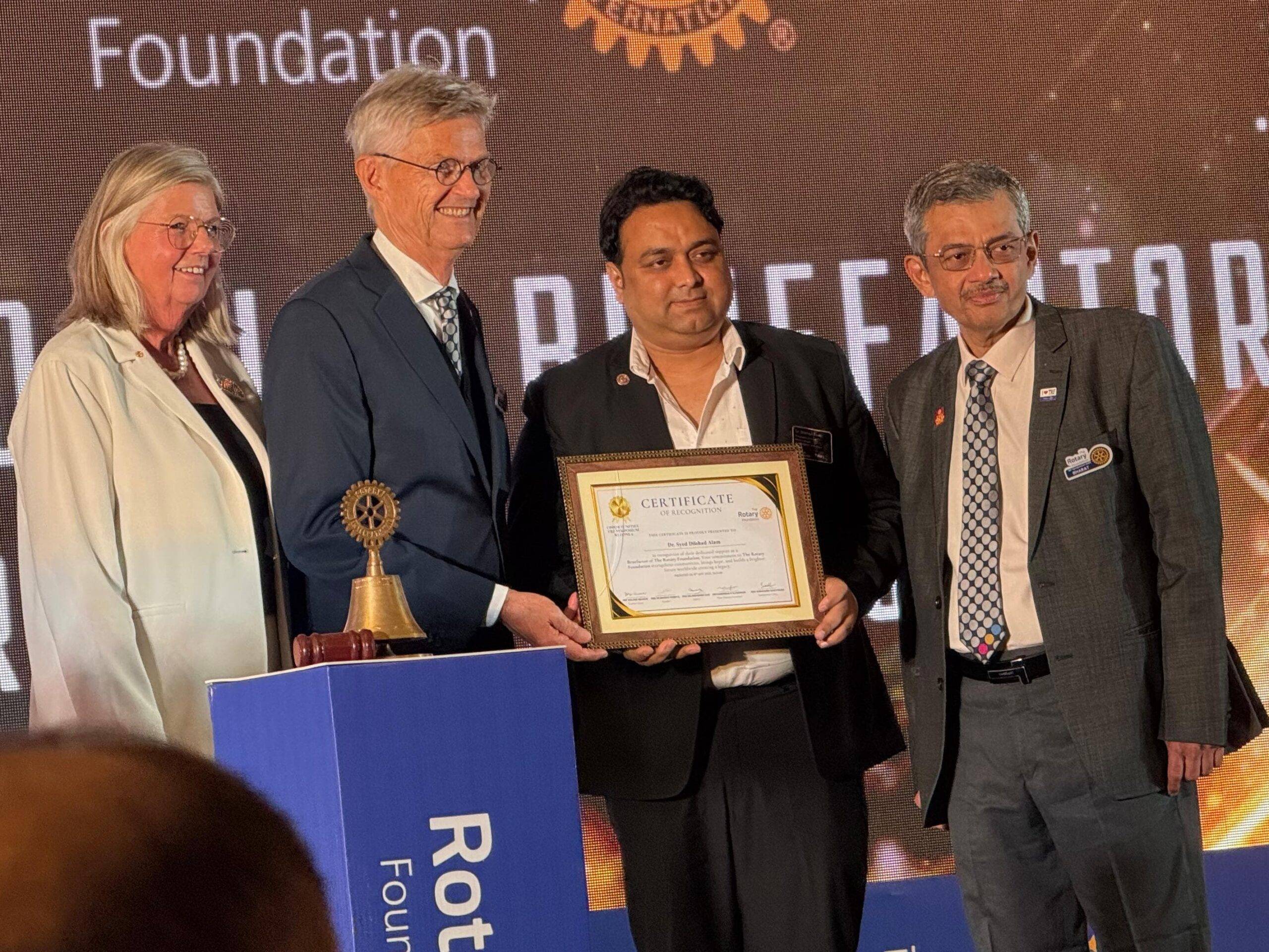 रोटरी इंटरनेशनल जोन-6 फाउंडेशन सिंपोजियम में बक्सर रोटरी अध्यक्ष डॉ. दिलशाद आलम को मिला सम्मान