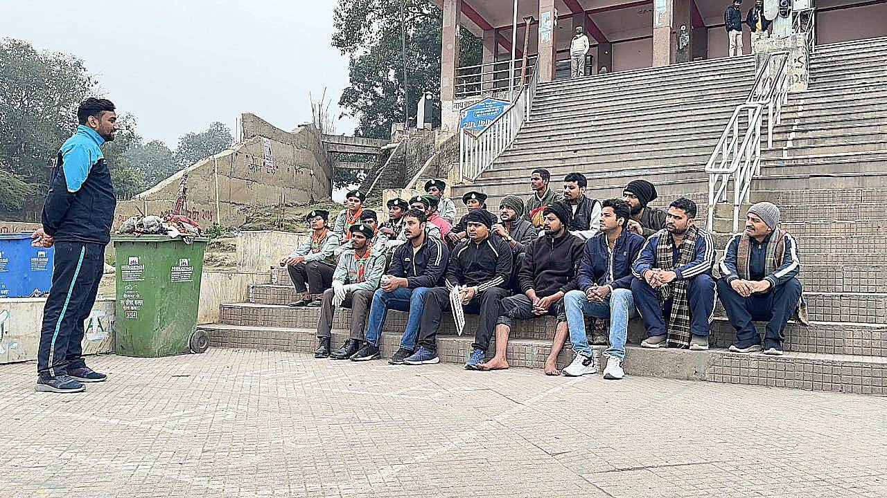 रुद्र गुरुकुल एवं स्काउट एंड गाइड के स्वयंसेवियों ने नाथ बाबा घाट पर फैले कचरे की सफाई कर दिया स्वच्छता का संदेश