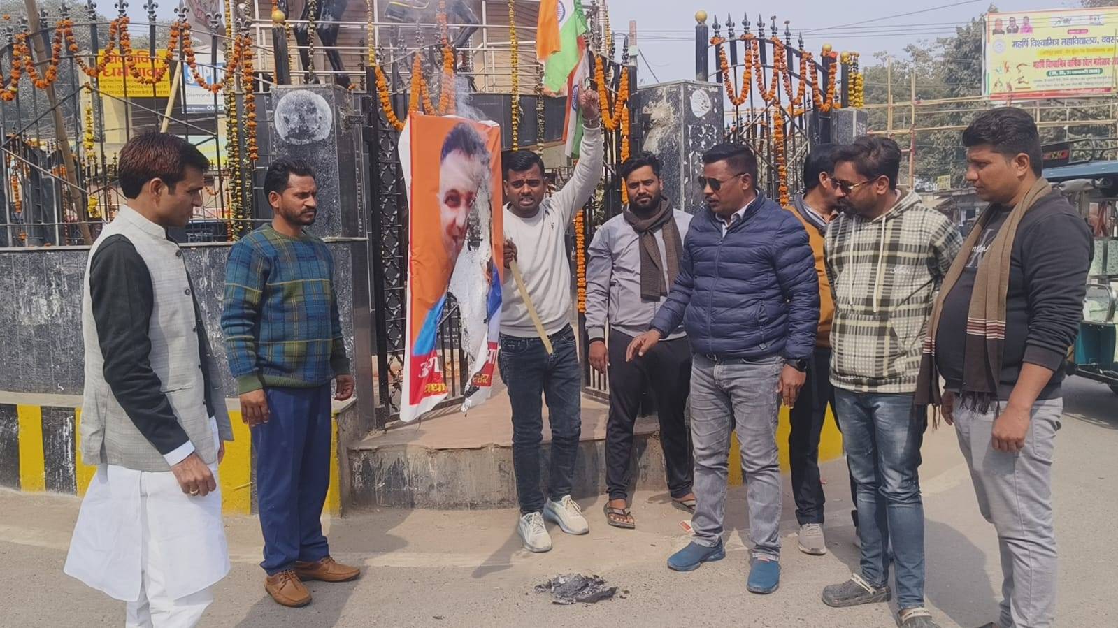 सदर विधायक का पोस्टर जलाकर युवाओं ने जताया विरोध
