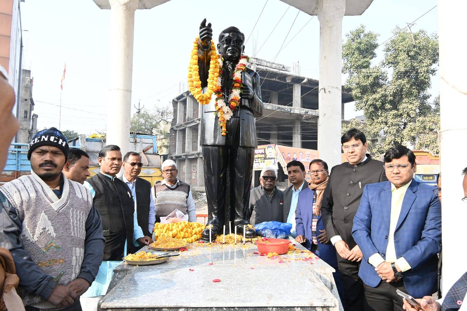 शनिवार को अनुसूचित जाति जनजाति कर्मचारी संघ बक्सर द्वारा संघ के अध्यक्ष महेंद्र राम की अध्यक्षता में भारत रत्न परमपूज्य बाबा साहब डॉ. भीमराव अंबेडकर की 69वीं महापरिनिर्वाण दिवस मनाया गया। शहर के अम्बेडकर चौक स्थित बाबा साहब की प्रतिमा पर मुख्य अतिथि बक्सर के जिला पदाधिकारी डॉ. विद्यानंद सिंह ने माल्यार्पण कर श्रद्धांजलि अर्पित की। इस अवसर पर एडीएम अरुण कुमार, डीसीएलआर शशि भूषण, ट्रेजरी ऑफिसर सुकर पासवान समेत कई अन्य पदाधिकारी एवं कर्मचारी उपस्थित रहे।
