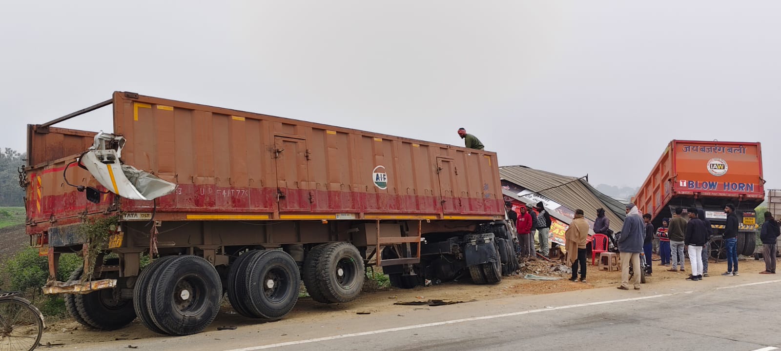 दलसागर में दो ट्रेलर की भिड़ंत, चाय – नाश्ता दुकान में घुसी ट्रेलर