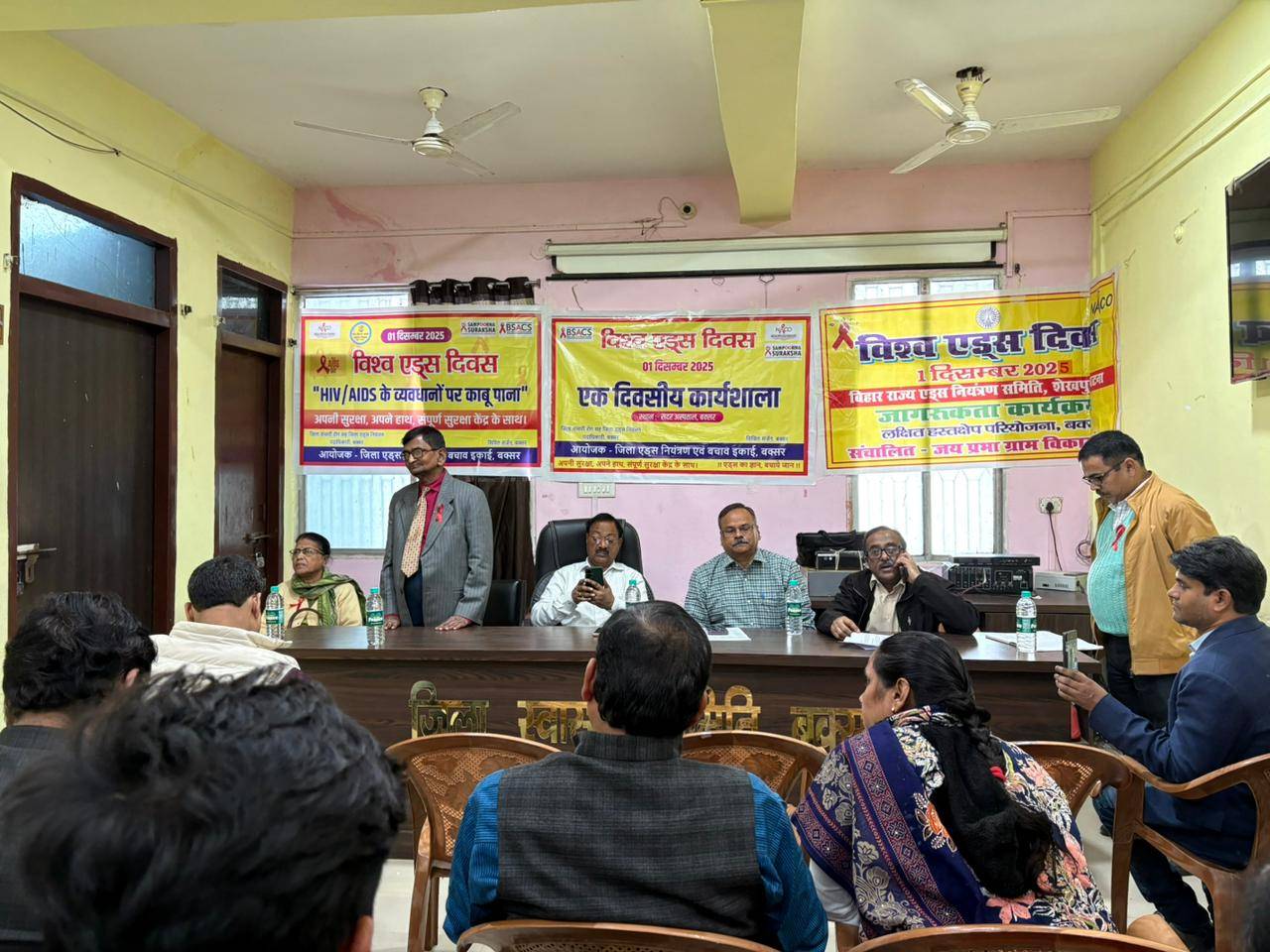 आम जनों  के बीच एच आई वी एड्स का प्रचार प्रसार करते हैं साथ ही उन्होंने यह भी बताया की बक्सर जिले में 2003 से अभी तक आई सी टी सी के आंकड़ों के अनुसार लगभग 1500 मरीज संक्रमित पाए गए हैं जिनका इलाज ए आर टी केंद्र सदर अस्पताल आरा से चल रहा है जब वह सामान्य स्थिति में आते हैं तो उन्हें बक्सर सदर अस्पताल के लिंक ऐ आर टी में लिंक कर दिया जाता है। टी आई एन जी ओ के नरेंद्र पांडेय प्रोग्राम मैनेजर द्वारा एच आई वी एड्स पर विभाग द्वारा किए जा रहे कार्यों के बारे में बताया गया। अंत में सिविल सर्जन बक्सर द्वारा अपना विचार व्यक्त करते हुए सभा का समापन किए। डॉक्टर शैलेंद्र कुमार,सी एस ऑफिस के गुंजन कुमार, सदर अस्पताल के चिकित्सा एवं मैनेजर दुष्यंत सिंह,पी पी टी सी टी परामर्शी मनोज कुमार, कृष्णानंद राय अनिल कुमार तिवारी, इत्यादि लोग उपस्थित रहे।