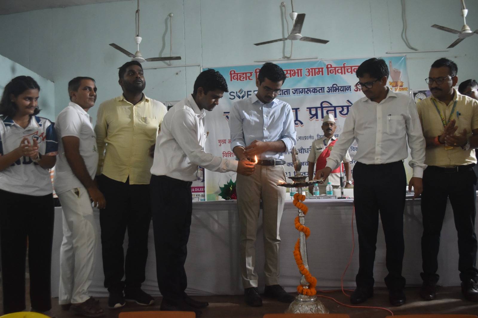 जिलाधिकारी के निर्देशानुसार आसन्न बिहार विधानसभा आम निर्वाचन-2025 के अवसर पर स्वीप (SVEEP) जागरूकता अभियान के अंतर्गत वूशु चैंपियन प्रतियोगिता-2025 का आयोजन रविवार को शहर के कला भवन में किया गया। जिसका शुभारंभ उप विकास आयुक्त आकाश चौधरी तथा अपर समाहर्ता अरुण कुमार सिंह द्वारा संयुक्त रूप से दीप प्रज्वलित कर किया गया।